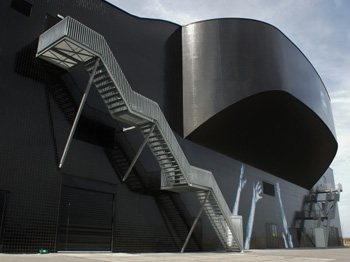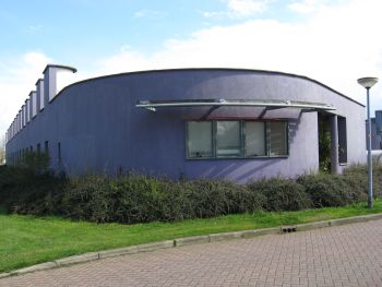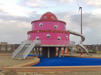 Next to the A6 motorway, exit 'Almere Stad', there's a controversial building called the Brandboxx (but understandably nicknamed UFO).